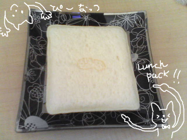 2008年10月05日 朝なのにランチパック 昨日、朝と昼を一緒に食べた話をしたら 「いつまで寝てるんだ」 とあきれられたので (だって眠かったんですよ…ホントに…ごめん。) 今朝はちゃんと早起きしました。 早起きは気持ちいいね。 たぶん。わりと。 でも、眠い日に布団で寝てるのも気持ちいいものですよ。 今朝の朝ごはんは、ランチパックです。 朝ごはんなのにランチとはこれいかに。 パッケージを開封したら、外からは見えないところに ピーナッツの焼き印が押してあって、 なんだかとってもかわいかった! こういうちょっとしたプラスアルファみたいなのは いくつになってもうれしいです。 写真にお絵かきを入れてみたら、なんだか変な生き物に仕上がりました。 「日記・雑談・その他」カテゴリの最新記事 < 前の記事次の記事 > コメント コメントフォーム 名前 コメント 評価する リセット リセット 顔 星 投稿する 情報を記憶 トラックバック
