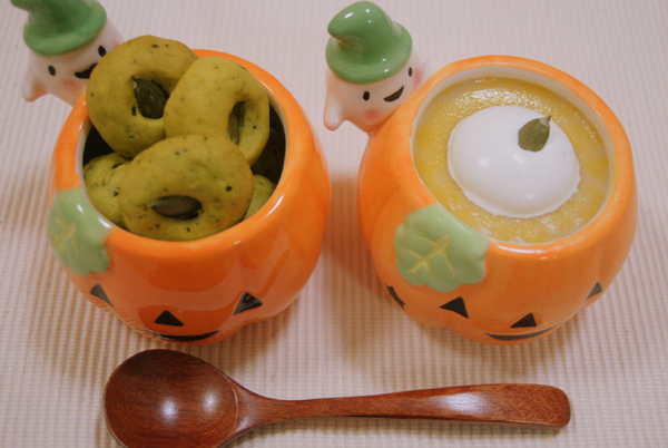 ハロウィンの陶器を作っていただきましたという