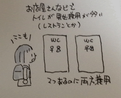都内だと男性用と女性用があってもう1つある場合が兼用だったり、女性用+男女兼用だったりするので、少し不思議な感じがしました