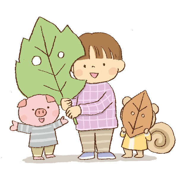 何人かの子が葉っぱをにぎりしめていたので、どこかの公園で拾って来たのかな?