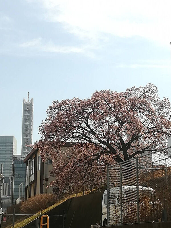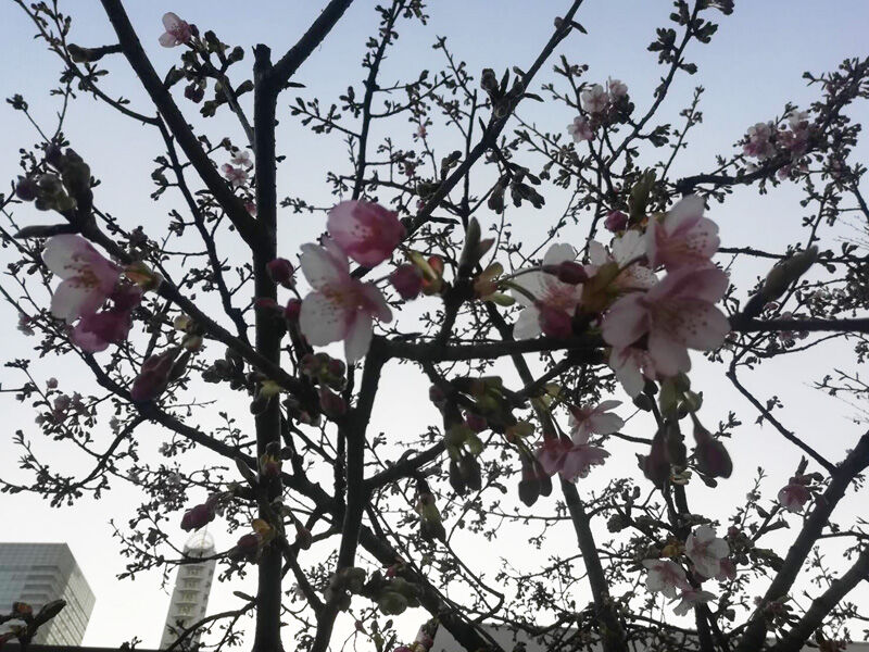 こちらはさいたま新都心駅前のコクーンシティ「さくらウォーク」に咲いていた河津桜。